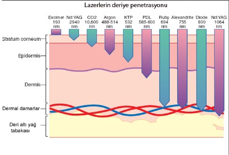 Epilasyonda kullanılan Lazer Tipleri ten rengine, uygulama bölgesine, kıl rengine ve kalınlığına göre çok farklı olabilir. Cilt açık renkse ve tüy yeteri kadar koyu ise Alexandrite Lazer (755 nm) Sistemi çok etkilidir. Koyu renkli ciltlerde ND Yag 1064 nm lazer yada Diode gibi daha büyük dalga boyuna sahip lazerler kullanılmaktadır. Nd-